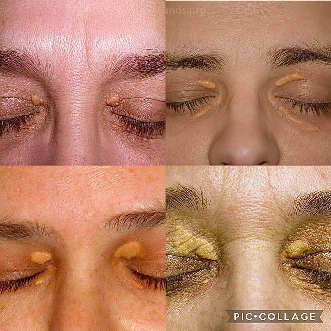 Xanthelasma due to high cholesterol level Ix: Lipid profile Thyroid function test to exclude hypothyrodism Rx cryotherapy☕️