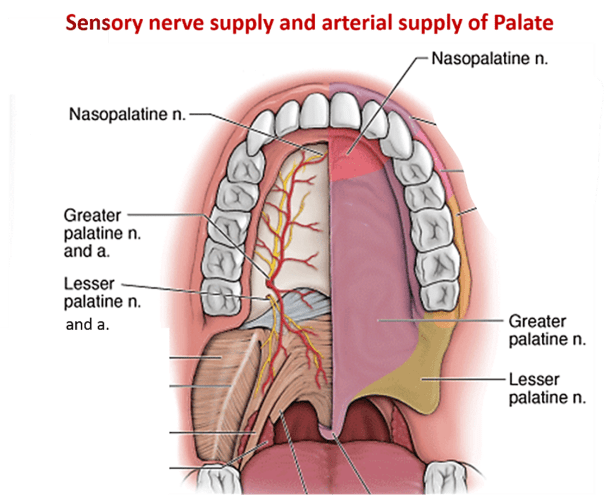 The soft palate has five muscles that receive innervation by the pharyngeal plexus of the vagus nerve, except for the tensor veli palatini muscle, which is innervated by a branch of the trigeminal nerve called the medial pterygoid nerve.