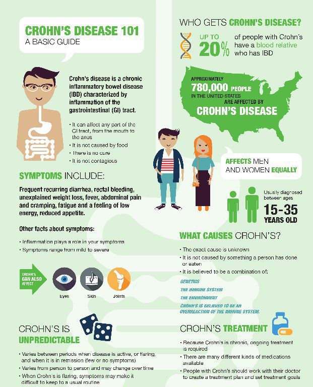 Most people with Crohn's disease need to take steroids (such as prednisolone) from time to time. Steroid medicines: can relieve symptoms by reducing inflammation in your digestive system – they usually start to work in a few days or weeks. are usually taken as tablets once a day – sometimes they're given as injections.