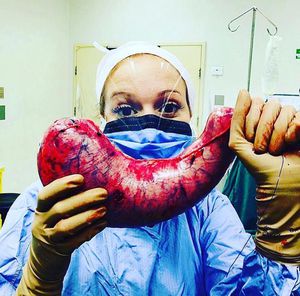 A surgical weight loss procedure! This is the portion of the stomach that was removed during a laparoscopic sleeve gastrectomy, a type of bariatric (surgical weight loss) procedure. About 75% of the stomach was removed by a surgical resection of a large portion of the stomach along the greater curvature, leaving a narrow gastric "tube" or "sleeve". No intestines are removed or bypassed during the sleeve gastrectomy. The basic principle behind that procedure is that it greatly reduces the size of your stomach and limits the amount of food that can be eaten at one time. It does not cause decreased absorption of nutrients or bypass your intestines and after eating a small amount of food, you will feel full very quickly and continue to feel full for several hours.