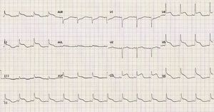 At first glance this ECG shows diffused ST elevation, but this isnt MI nor pericarditis. This ECG was taken from a previously healthy 18-year old girl with severe traumatic brain injury and massively raised intracranial pressure (30-40 mmHg). There is widespread ST elevation with a pericarditis-like morphology and no reciprocal change (except in aVR and V1). She had no cardiac injury / abnormality to explain the ST elevation. The ST segments normalised as the intracranial pressure came under control (following treatment with thiopentone and hypertonic saline). So raised ICP can cause ECG modifications so dont forget that 😎 @medicalcortex