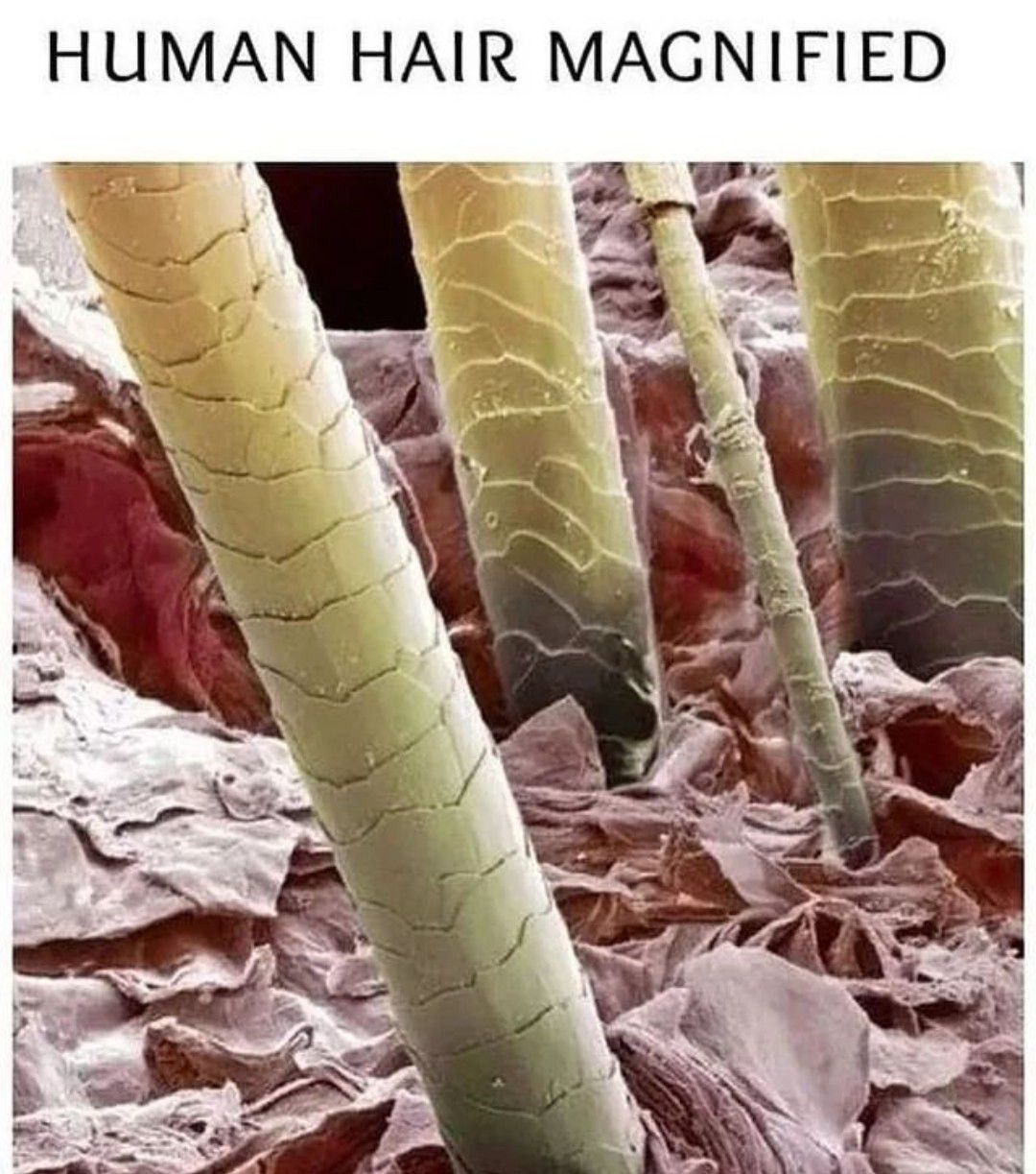 This is how a magnified human hair looks like.
