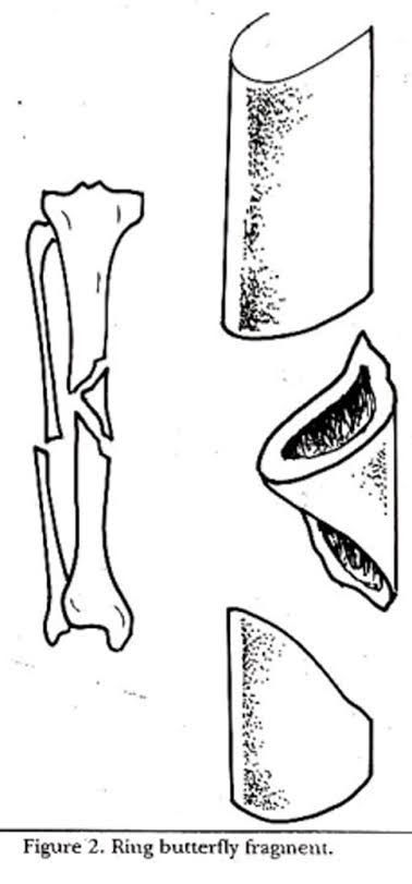 The term is commonly used in orthopedic surgery, and results from two oblique fracture lines meeting to create a large triangular or wedge-shaped fragment located between the proximal and distal fracture fragments, and resembles a butterfly