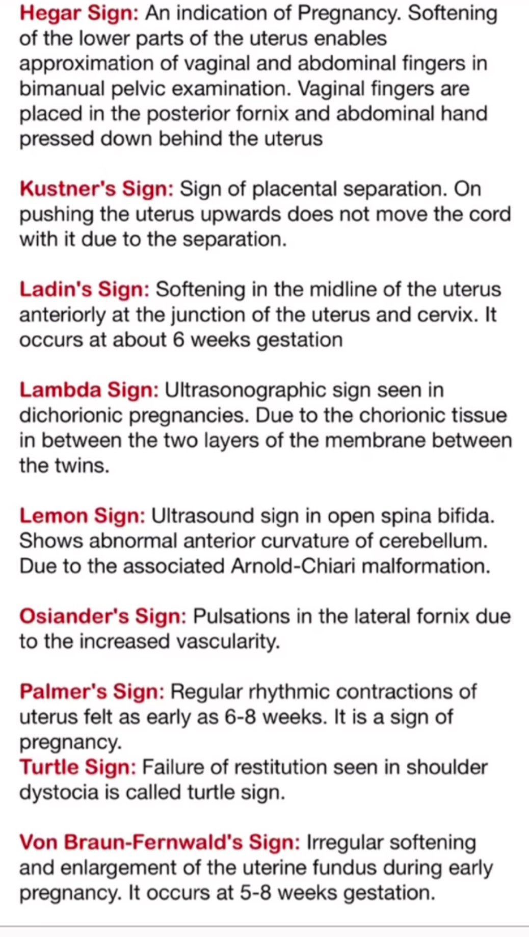 Here are multiple obsterics sign to revise.
