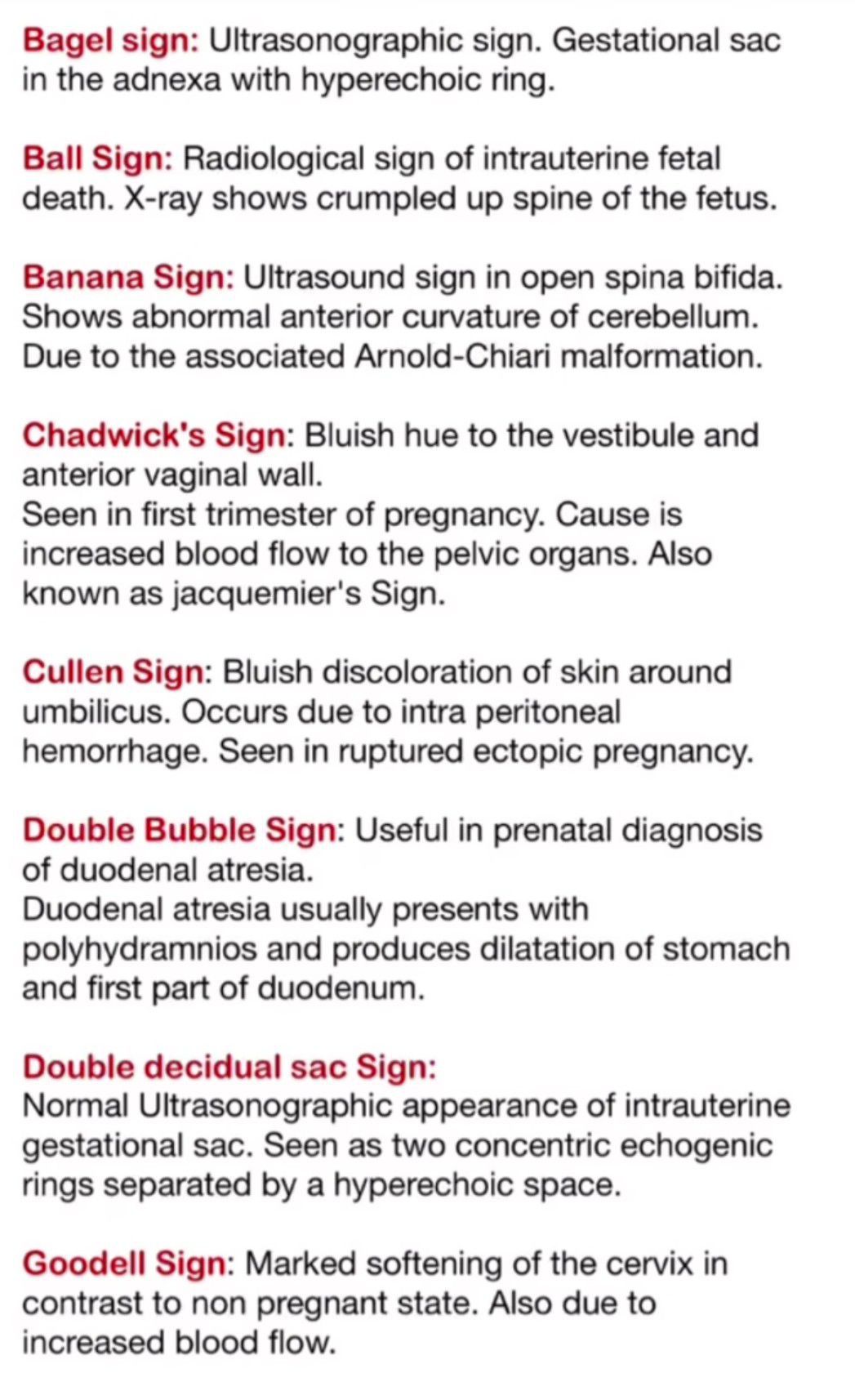 Here are multiple obsterics sign to revise.