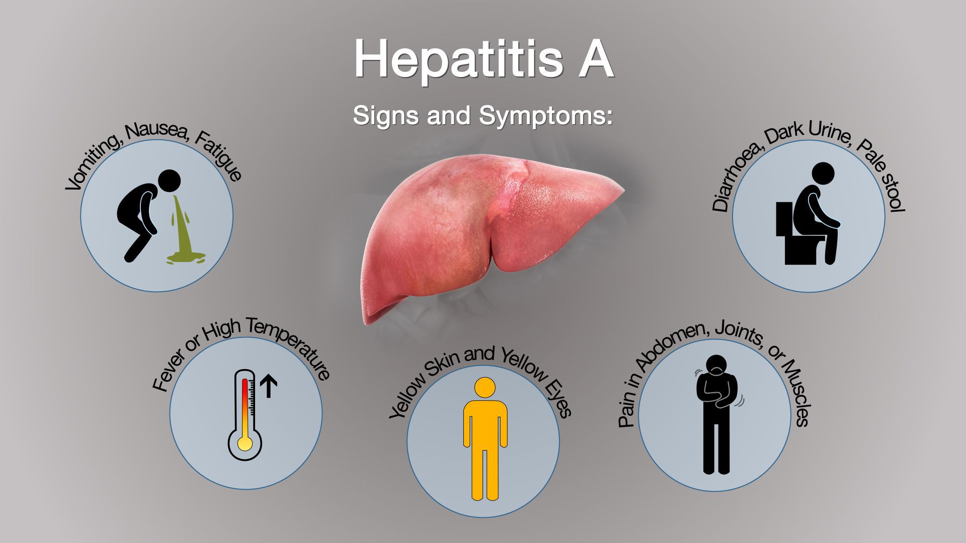 What are the symptoms of hepatitis A? Yellow skin or eyes. Not wanting to eat. Upset stomach. Throwing up. Stomach pain. Fever. Dark urine or light- colored stools. Diarrhea