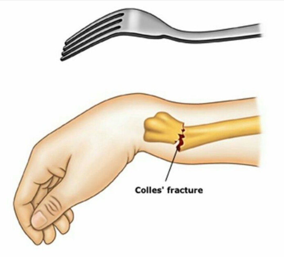 A Colles fracture is a type of broken wrist (fracture). It's also called a distal (away from the center of the body) fracture with dorsal angulation (an upward angle). A Colles fracture is a very painful and serious injury. Go to your nearest emergency department if you suspect you have any type of wrist fracture.