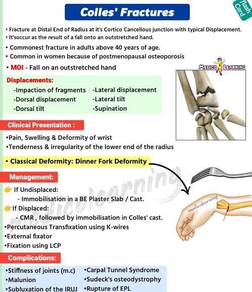 A Colles fracture is a type of broken wrist (fracture). It's also called a distal (away from the center of the body) fracture with dorsal angulation (an upward angle). A Colles fracture is a very painful and serious injury. Go to your nearest emergency department if you suspect you have any type of wrist fracture.