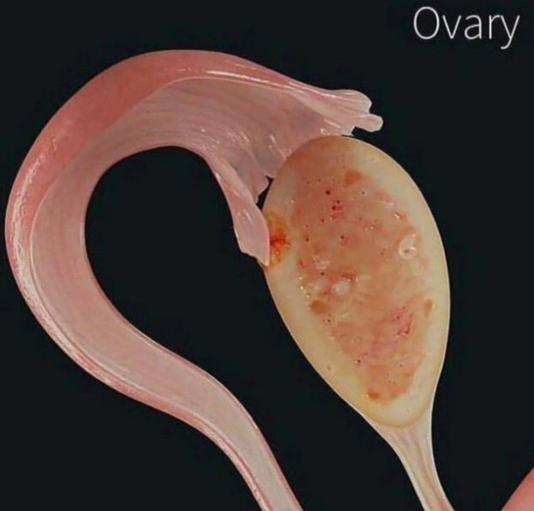The ovary is an organ found in the female reproductive system that produces an ovum. The Fallopian tubes, also known as uterine tubes, salpinges are tubes that stretch from the uterus to the ovaries, and are part of the female reproductive system. The fertilized egg passes through the Fallopian tubes from the ovaries to the uterus. The Fallopian tubes is simple columnar epithelium with hair-like extensions called cilia which carry the fertilized egg. .