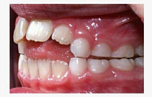 Intruding of the toungue between incisors, thumbsucking or sucking pacifier, tongue is also resting on the floor of the mouth.