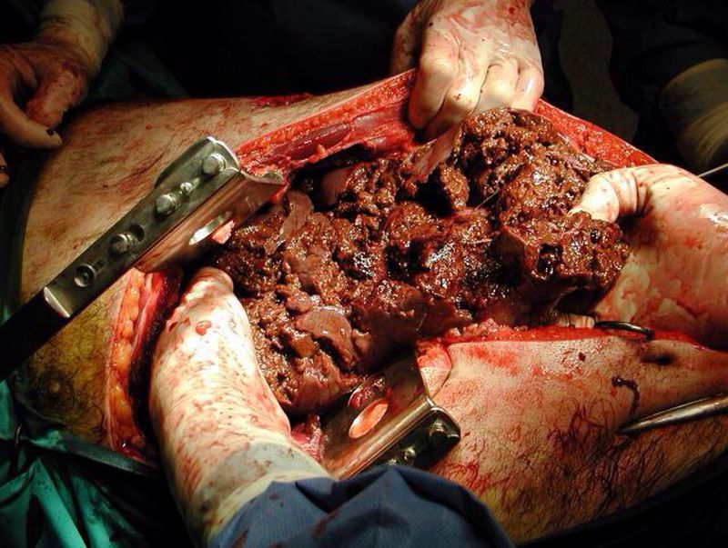Gunshot Injury to Livergrade V liver injury after patient sustained gunshot wound to RUQ