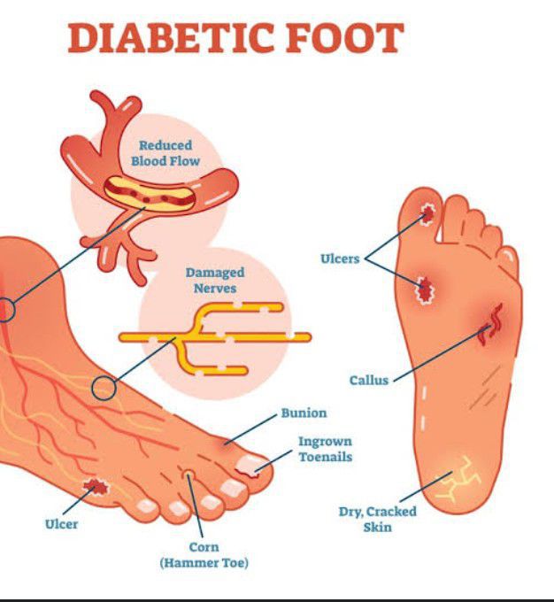 Foot problems are common in people with diabetes. They can happen over time when high blood sugar damages the nerves and blood vessels in the feet. The nerve damage, called diabetic neuropathy, can cause numbness, tingling, pain, or a loss of feeling in your feet.