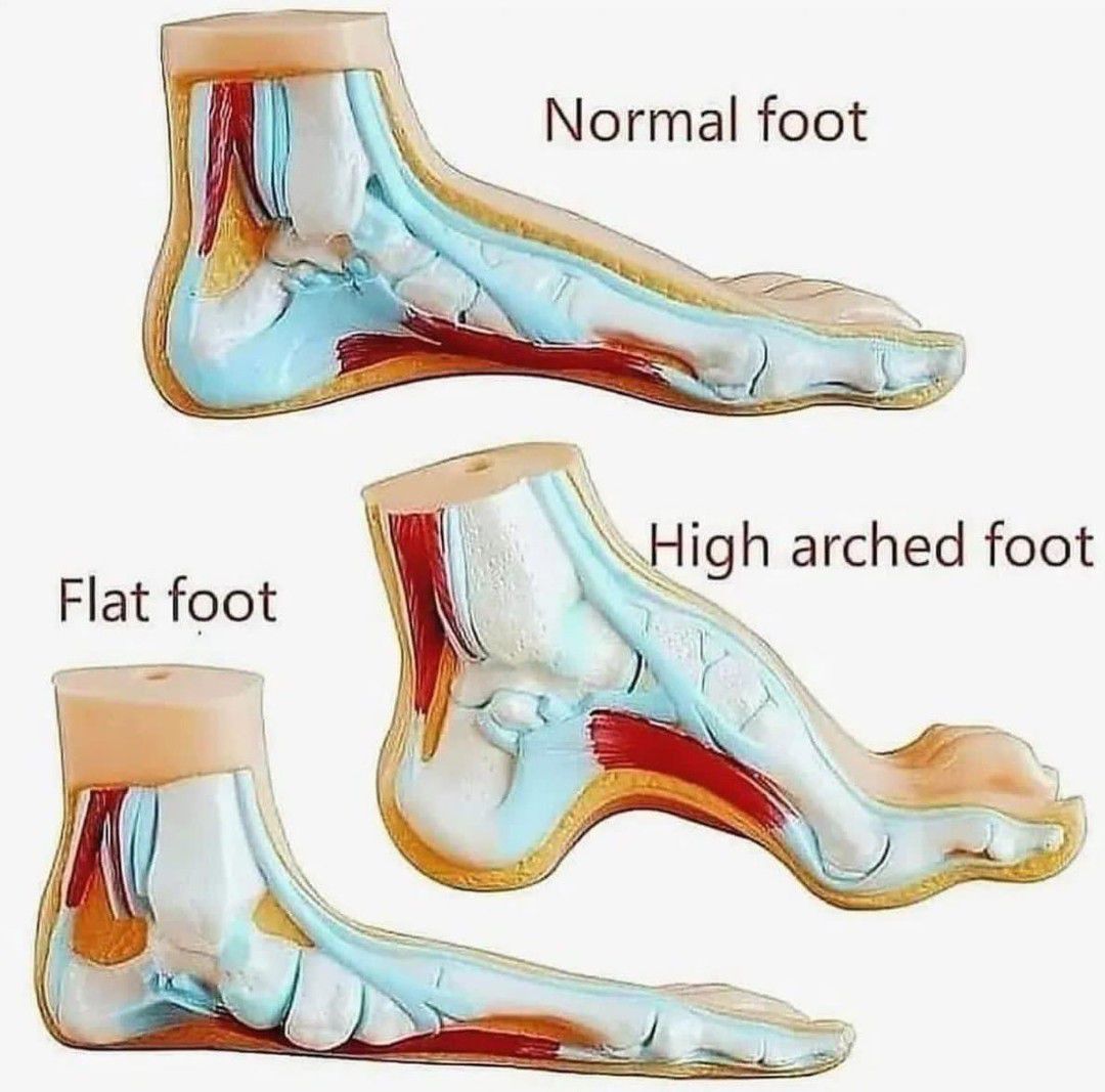 There are three foot types that podiatrists will refer to: High arch (Supinated or 'Rolling Out” foot) Neutral arch ('Normal' foot) Flat arch (Pronated or 'Rolling In' foot)