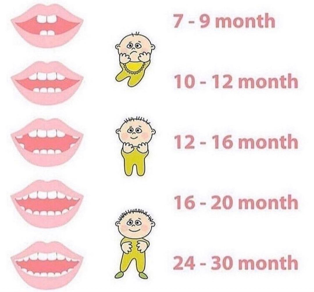 Eruption sequence of primary teeth is shown here.