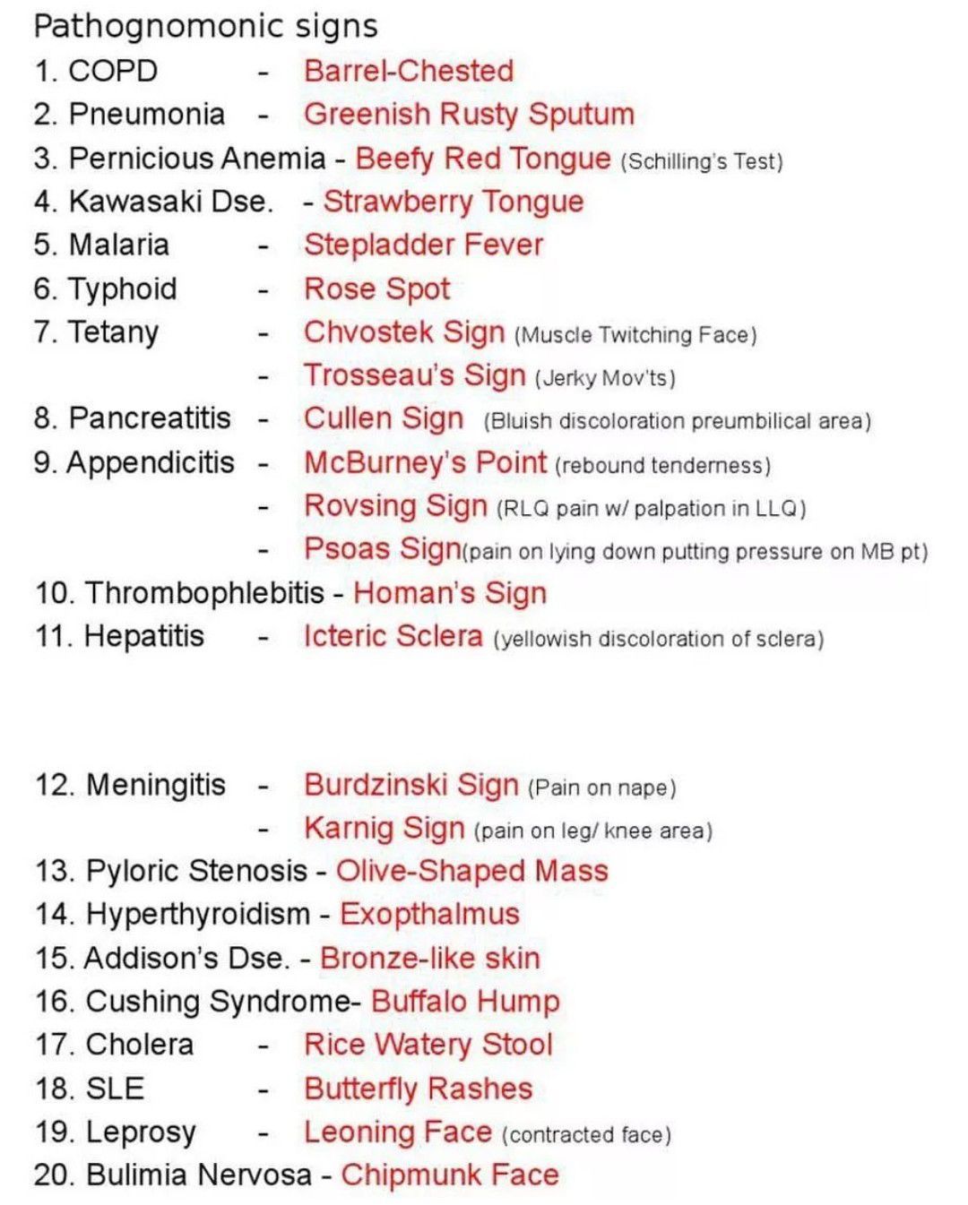 Pathognomonic Signs