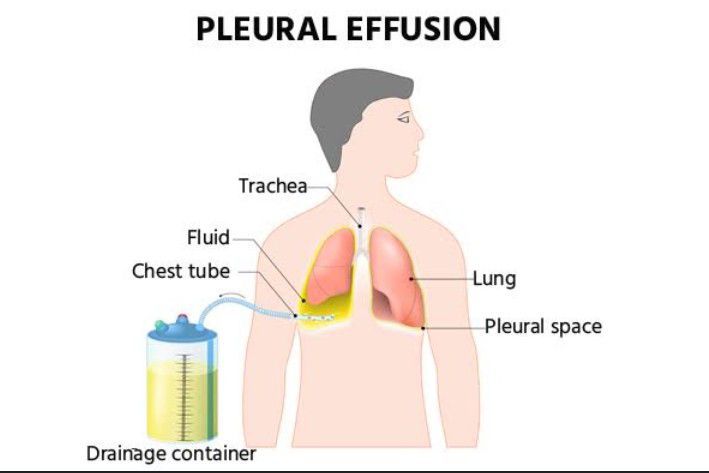 A pleural effusion is a buildup of fluid between the layers of tissue that line the lungs and chest cavity.