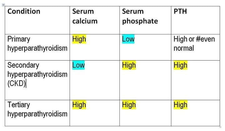 Comparison of the levels of calcium,phosphate,pth in primary secondary and tertiary hyperparathyroidism