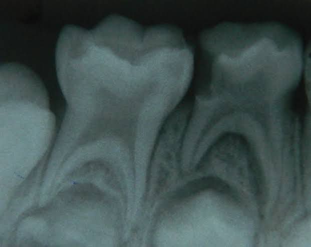 The etiology of taurodontism is unclear, but it also appears in certain genetic syndromes. It is thought to be caused by the failure of Hertwig's epithelial root sheath diaphragm to invaginate at the proper horizontal level, resulting in a tooth with normal dentin, short roots, elongated body, and enlarged pulp.