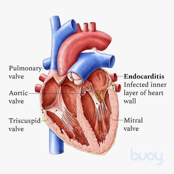 Endocarditis is a life-threatening inflammation of the inner lining of the heart's chambers and valves. This lining is called the endocardium. Endocarditis is usually caused by an infection. Bacteria, fungi or other germs get into the bloodstream and attach to damaged areas in the heart. Things that make you more likely to get endocarditis are artificial heart valves, damaged heart valves or other heart defects.
