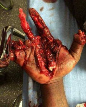 The injury caused by a firework exploding while being held can have a devastating effect on the functional status of the hand. They include soft tissue injuries, fractures, burns and traumatic amputations in addition to disruption of the neurovascular supply. Injured patients often report that the fuse simply burned too quickly and ignited the device before the device could be released or thrown.