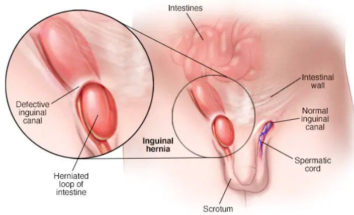 Inguinal hernia signs and symptoms include: A bulge in the area on either side of your pubic bone, which becomes more obvious when you're upright, especially if you cough or strain. A burning or aching sensation at the bulge. Pain or discomfort in your groin, especially when bending over, coughing or lifting.