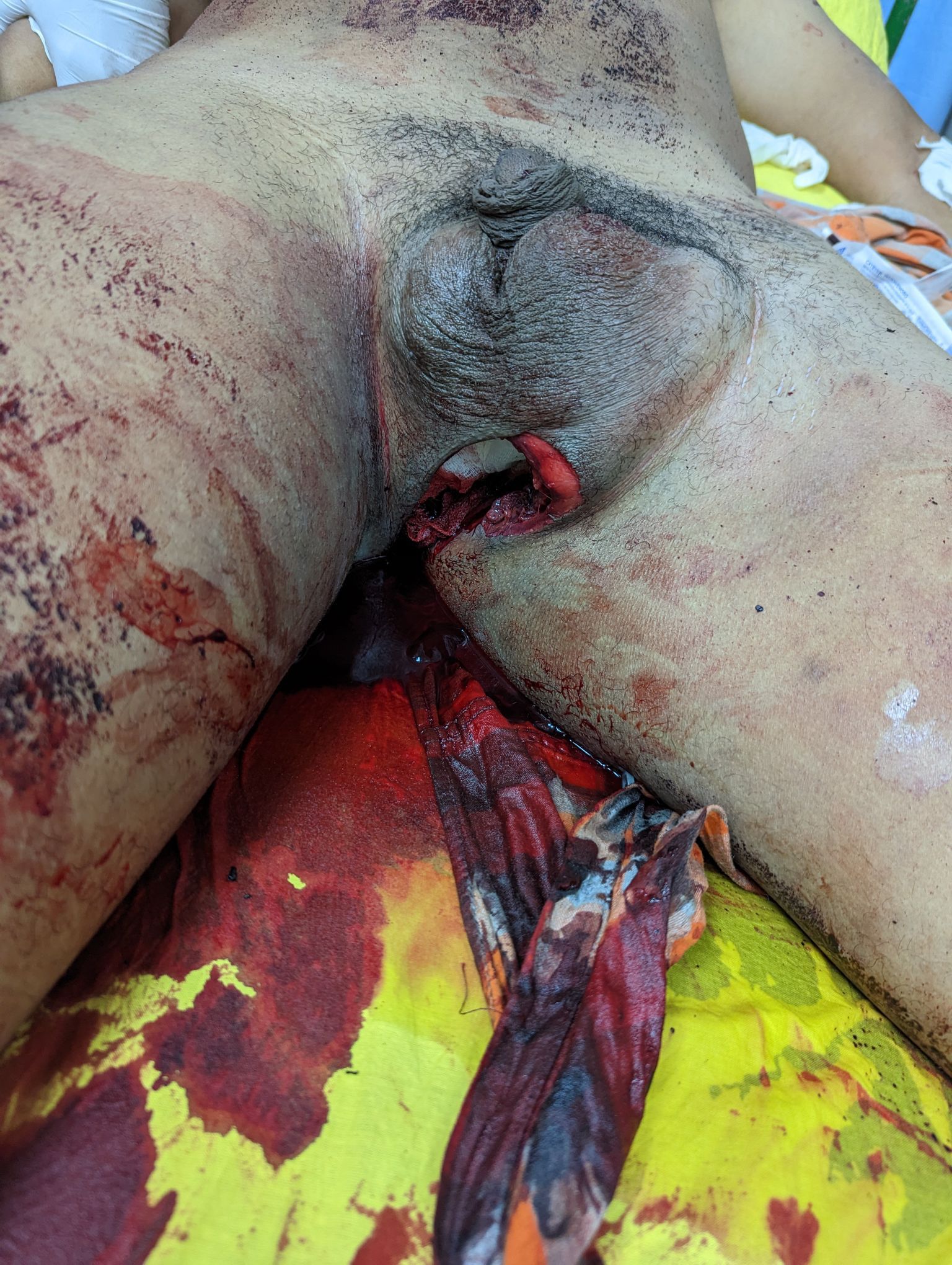 26-year-old male patient admitted to emergency surgery due to a motorcycle-truck accident, presenting testicular trauma.