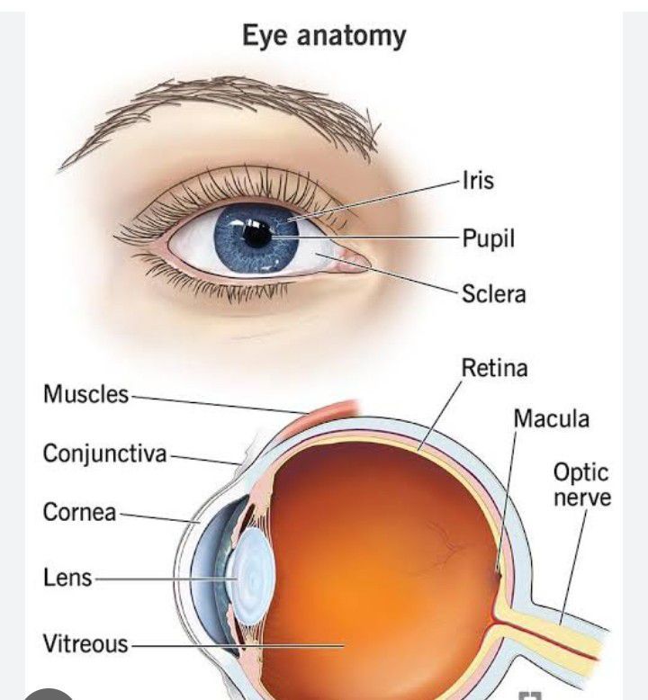 The eye is made up of three coats, which enclose the optically clear aqueous humour, lens, and vitreous body. The outermost coat consists of the cornea and the sclera; the middle coat contains the main blood supply to the eye and consists, from the back forward, of the choroid, the ciliary body, and the iris.
