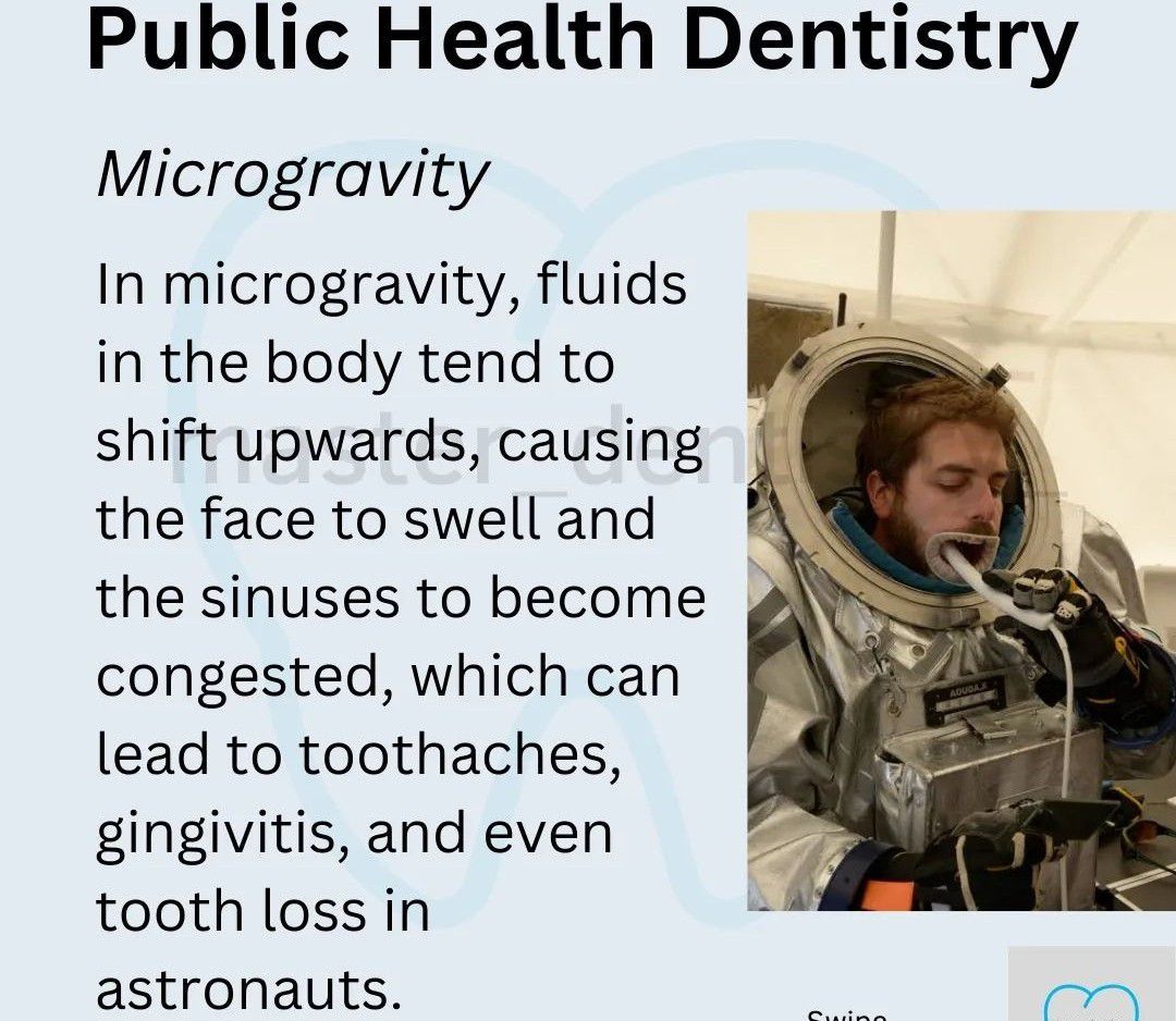 Microgravity affects dental care in space.