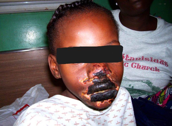 The exact cause is unknown, but noma may be due to a certain kind of bacteria. This disorder most often occurs in young, severely malnourished children between the ages of 2 to 5. Often they have had an illness such as measles, scarlet fever, tuberculosis, or cancer. They may also have a weakened immune system