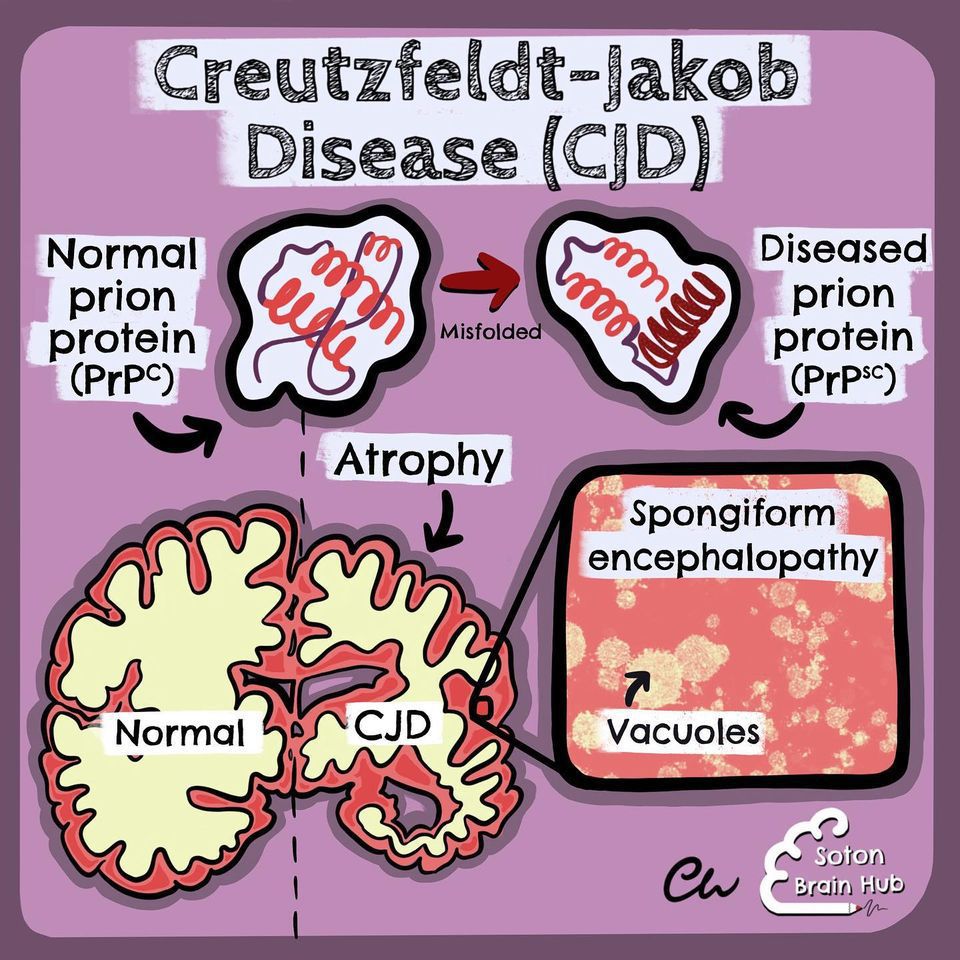 Creutzfeldt-Jakob disease (CJD) is a rare and progressive neurodegenerative disease affecting the brain and central nervous system. CJD belongs to the family of transmissible spongiform encephalopathies (TSEs), which also include mad cow disease (bovine spongiform encephalopathy) in animals and Kuru disease in humans. This disease is caused by an abnormal protein called a prion that accumulates in the brain and forms insoluble plaques that damage and destroy brain cells. The exact cause of the formation of these abnormal proteins is still unknown, but it is believed that it may be caused by an inherited genetic mutation, exposure to contaminated tissues or products, or simply by the spontaneous formation of abnormal prions in the brain. Symptoms of the disease include memory difficulties, balance and coordination problems, mood changes, speech and vision problems, muscle spasms and general deterioration of brain function. The disease progresses rapidly and can lead to death within months. There is no cure for CJD, and treatment focuses on symptom management. In some cases, drug therapy may be used to control agitation, anxiety and other psychiatric symptoms. Physical therapy may be used to maintain muscle strength and improve balance and coordination. Because CJD is caused by an abnormal protein and can be transmitted through exposure to contaminated tissues or products, prevention of the disease focuses on reducing the risk of exposure. This may include removing potentially contaminated animal tissues from the food chain and adopting strict sterilization procedures in medical facilities.
