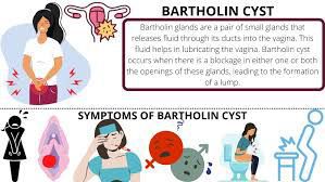 Symptoms If you have a small, noninfected Bartholin's cyst, you may not notice it. If the cyst grows, you might feel a lump or mass near your vaginal opening. Although a cyst is usually painless, it can be tender. A full-blown infection of a Bartholin's cyst can occur in a matter of days. If the cyst becomes infected, you may experience: A tender, painful lump near the vaginal opening Discomfort while walking or sitting Pain during intercourse Fever A Bartholin's cyst or abscess typically occurs on only one side of the vaginal opening.