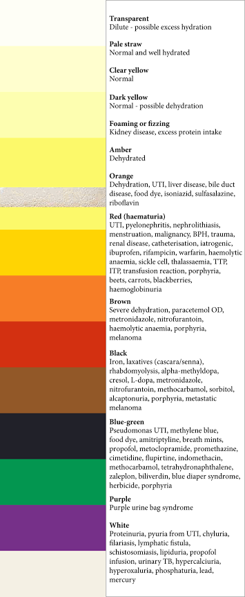 Here is a chart to learn the color interpretation of urine.