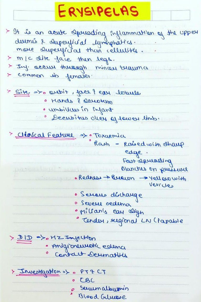 Erysipelas is a skin infection involving the dermis layer of the skin, but it may also extend to the superficial cutaneous lymphatics. It is characterized by an area of erythema that is well demarcated, raised, and often affects the lower extremities, with the face being the second most commonly affected site.
