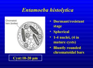 It is an intestinal parasite.It is pathogenic.Example for non pathogenic entamoeba species:entamoeba dispar,entamoeba hartmani.To differentiate entamoeba histolytica with other entamoeba is by the presence of red blood cells in entamoeba histolytica cytoplasm.It can be found in colon. Treatment:paromomycin,iodoquinol