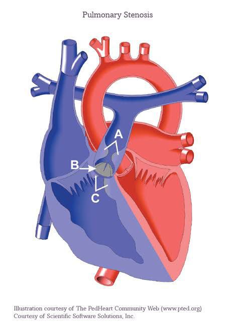 Pulmonary valve stenosis is a narrowing of the valve between the lower right heart chamber and the lung arteries. In a narrowed heart valve, the valve flaps may become thick or stiff. This reduces blood flow through the valve. Usually, pulmonary valve disease is caused by a heart problem that develops before birth. A heart problem present at birth is called a congenital heart defect. In adults, pulmonary valve stenosis may be a complication of another illness