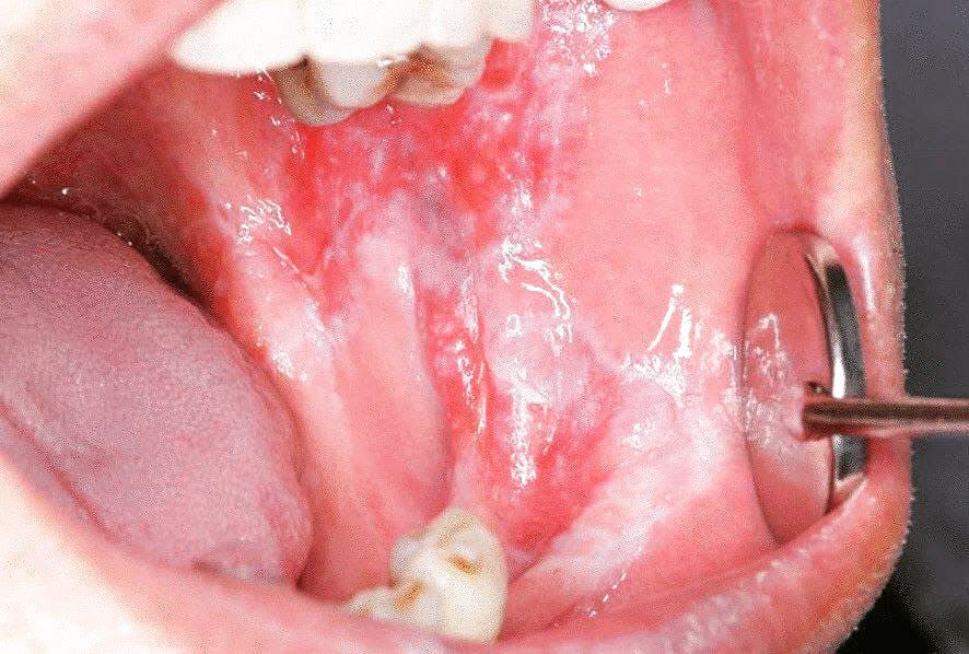 Oral lichen planus (OLP) is a chronic inflammatory disease that affects the mucus membrane of the oral cavity. Oral lichen planus may appear as white, lacy patches; red, swollen tissues; or open sores. These lesions may cause burning, pain or other discomfort.