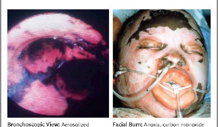 Inhalation injury is a nonspecific term that refers to damage to the respiratory tract or lung tissue from heat, smoke, or chemical irritants carried into the airway during inspiration [1]. The term is often used synonymously with smoke inhalation injury.