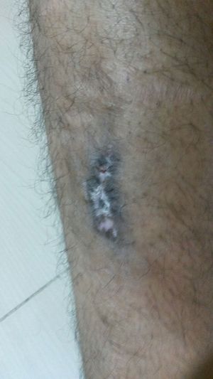 This looks like Psoriasis(occasionally we may need a biopsy to confirm dx) . If this is the only lesion id like to start with topical steroid creams, if its Severe we add light therapy or systemic oral corticosteroids and when absolutely necessary we may use immunosuppressive agents like methotrexate , cyclosporine. Above Rx options can be used with other measures like diet and herbs.