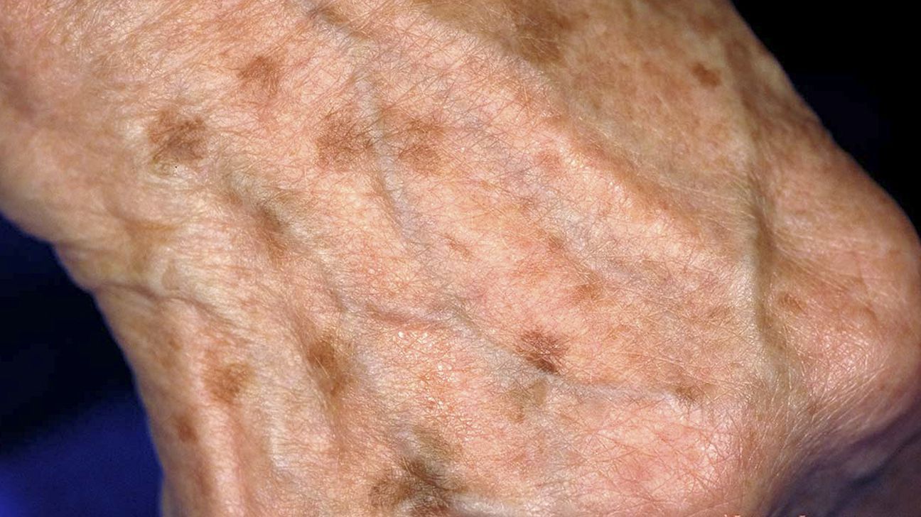 A macule is a flat, distinct, discolored area of skin. It usually does not include a change in skin texture or thickness. The skin is the largest organ of the body. The skin and its derivatives (hair, nails, sweat and oil glands) make up the integumentary system. One of the main functions of the skin is protection.
