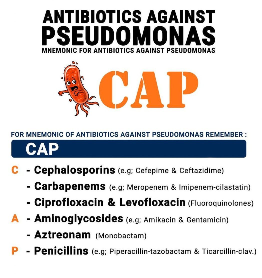 Antibiotics against Pseudomonas are presented here in the form of a mnemonic.