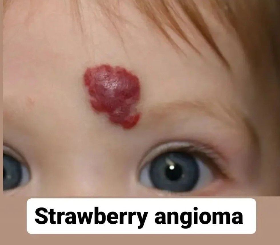 What causes strawberry angiomas? They're not the result of anything a person does during pregnancy. It's a myth that foods or stress cause any type of birthmark. Strawberry hemangiomas form when blood vessels and cells close to the skin don't develop as they should. Instead, the vessels clump together into a noncancerous mass or tumor By: https://my.clevelandclinic.org › health