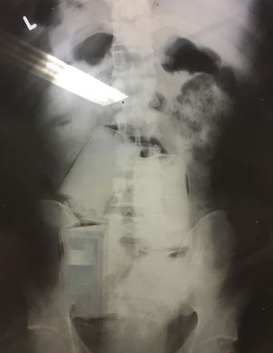 At the airport the police had taken a patient to us accused having drugs with him. After an Xray we could see 4 packets of cocaine which had been swallowed before the flight . This kind of drug smuggling is called bodypacking.