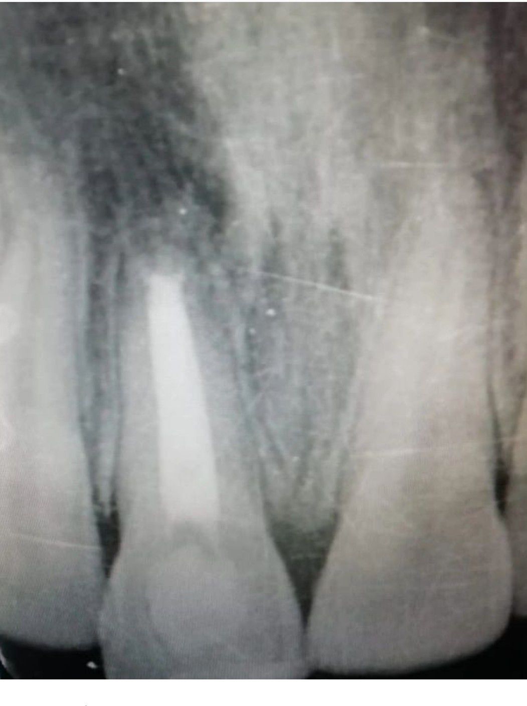 Apexification by Calcium hydroxide in necrotic immature central incisor. ⭐ The apical diameter ranges from 2-3.5 mm. ⭐ It takes 3-10 months for apical barrier to develop. ⭐ The type of apical barrier are 65% cap, 25% bridge and 10% ingrown wedge. ⭐ Rubber dam is applied, debridement done, canal is irrigate, then dried with paper points. ⭐ Root canal is then filled with Caoh by placing needle 2mm short of apex, then introducing Caoh slowly and withdrawing, take xray to evaluate any void, if there is any void specially in apical region, reintroduce the Caoh. ⭐ At recall, observe formation of apical barrier, if Caoh is partially absorbed, repeat the whole process, untill apical closure is achieved. ⭐ Seal the chamber with temporary Zinc-oxide eugenol cement. ⭐ If apical barrier is formed, measure the closure by radiograph and instruments. Lateral obturation is done, and permanent restoration given. ⭐ Keep patient on followup. By: https://www.instagram.com/p/CtZiUz7IYIO/?utm_source=ig_web_copy_link&igshid=MzRlODBiNWFlZA==