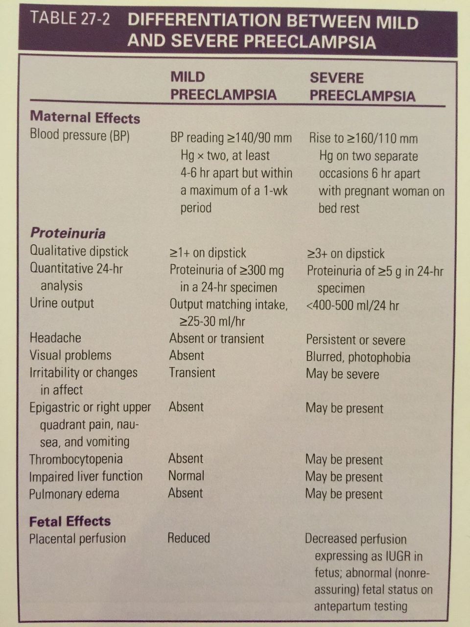 Diagnostic Criteria for Pre-eclampsia