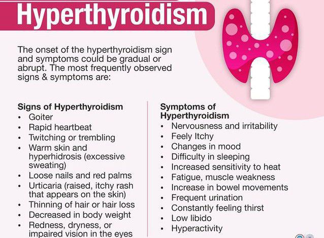 Symptoms of overt thyrotoxicosis include heat intolerance, palpitations, anxiety, fatigue, weight loss, muscle weakness, and, in women, irregular menses. Clinical findings may include tremor, tachycardia, lid lag, and warm moist skin.