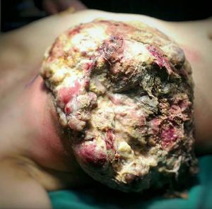 Breast cancer. Tumor of 35cm in diameter and weighing about 10 kg.