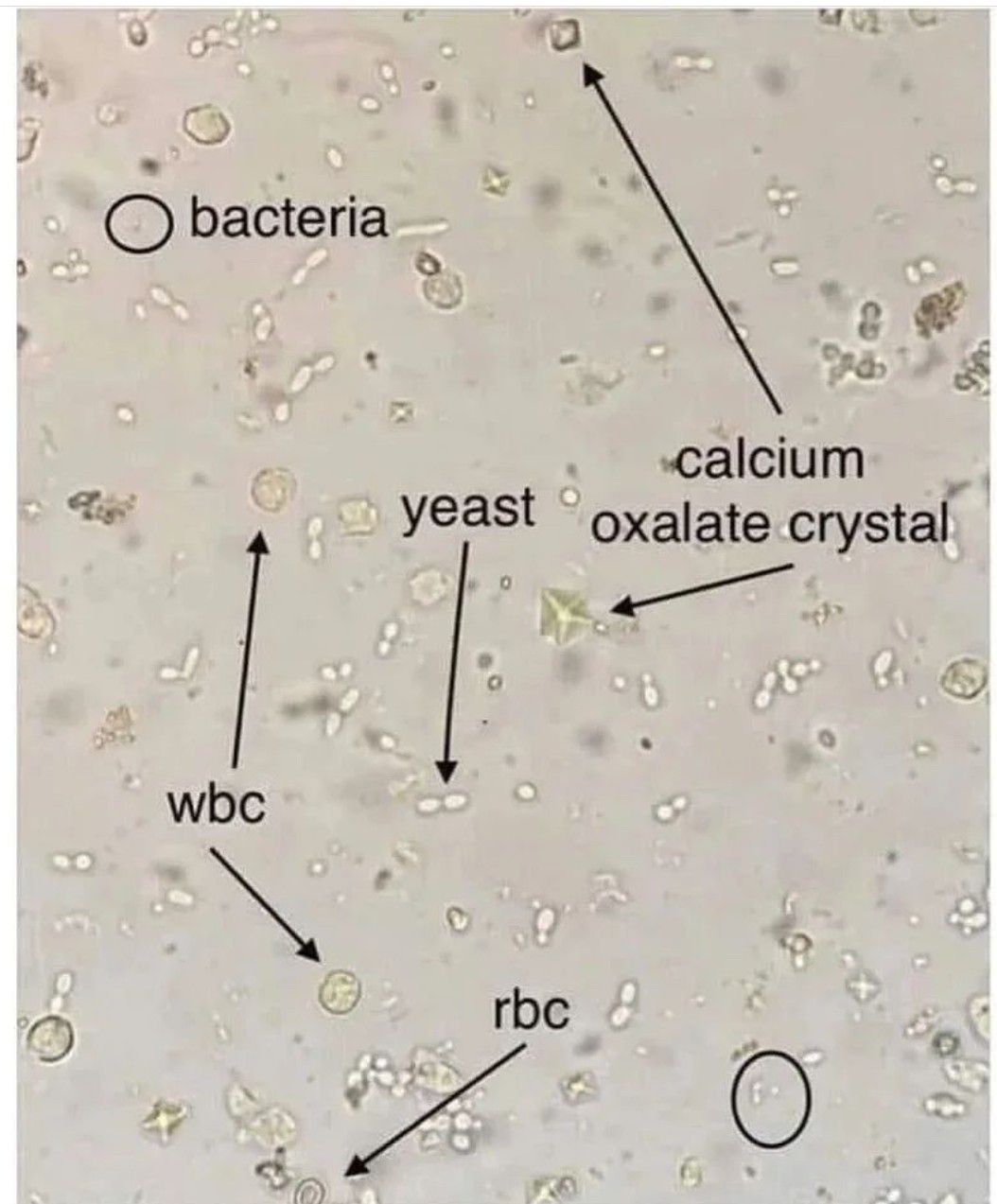 Urine Analysis under microscope.