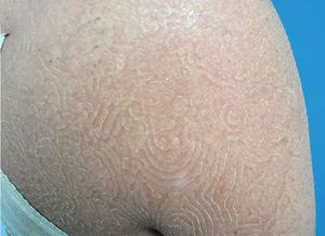 The correct answer is tinea imbricata. This is a rare, superficial fungal infection caused by Trichophyton concentricum, and is endemic to the South Pacific and regions of Central America and South America. The lesions, which are often pruritic, are most commonly seen on the torso and limbs but can develop on any part of the body. The infection tends to follow a chronic or recurrent and relapsing course, although it is not invasive.