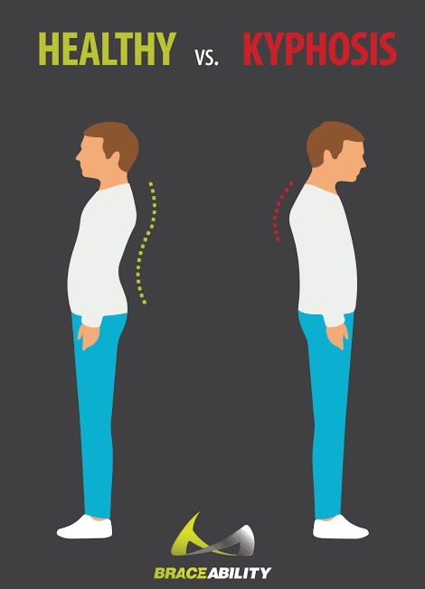 Kyphosis is an exaggerated, forward rounding of the upper back. In older people, kyphosis is often due to weakness in the spinal bones that causes them to compress or crack. Other types of kyphosis can appear in infants or teens due to malformation of the spine or wedging of the spinal bones over time.