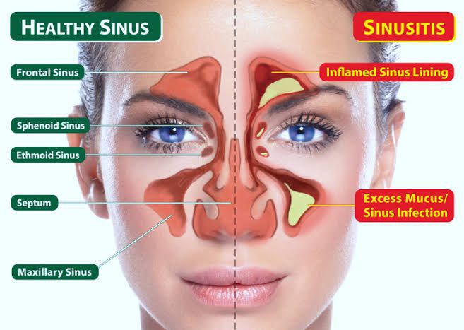 Sinusitis is an inflammation, or swelling, of the tissue lining your sinuses. Sinuses are structures inside your face that are normally filled with air. Bacterial infections, viral infections and allergies can irritate them, causing them to get blocked and filled with fluid. This can cause pressure and pain in your face, nasal congestion (a stuffy nose) and other symptoms. Sinusitis is also sometimes called rhinosinusitis.